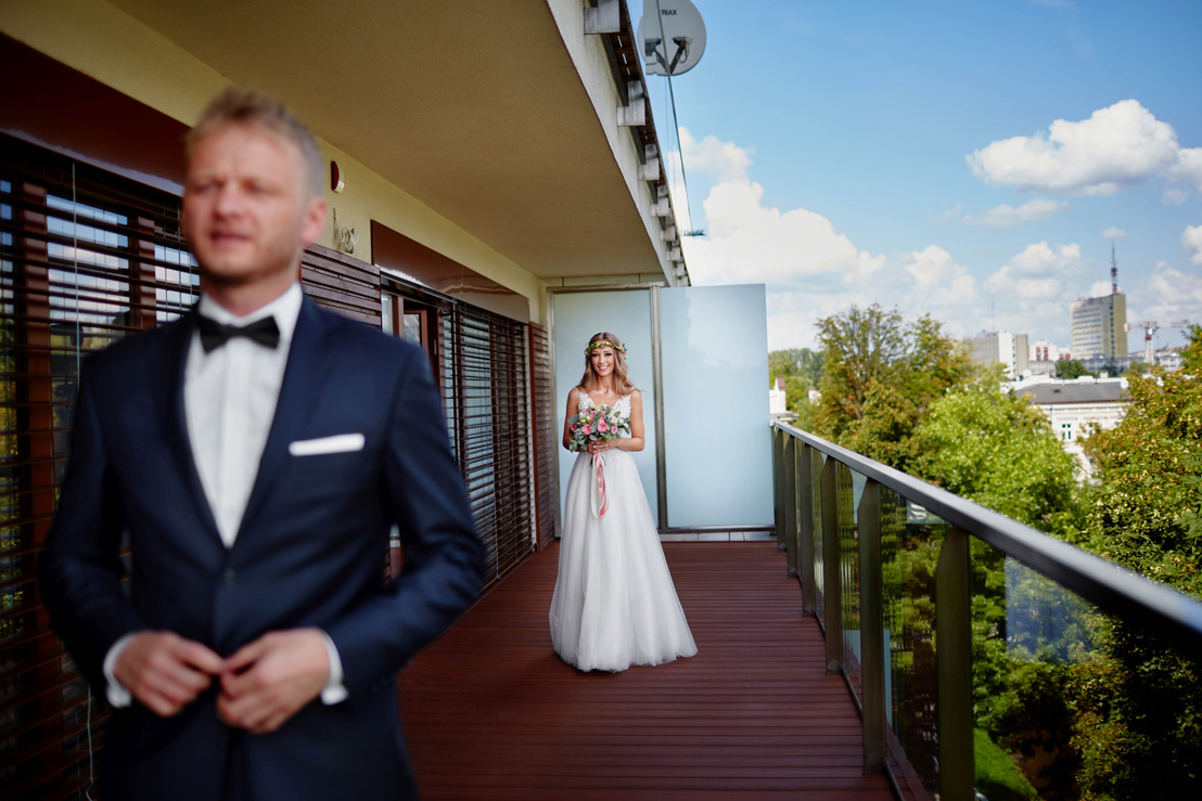 W plecakach chłopaków znajdziemy też oczywiście dodatkowe lampy błyskowe. Ponieważ każda sala weselna czy plener są inne, dodatkowe oświetlenie pozwala lepiej zaplanować ujęcia i bardziej kontrolować warunki zastane na miejscu. Technicznie Krzysztof i Sebastian ustawiają 4 lampy bezprzewodowe połączone w systemie Canon RT, które obsługują za pomocą pilota, dzięki czemu mogą każde oświetlenie „wykreować” niemal dokładnie według swojej wizji.